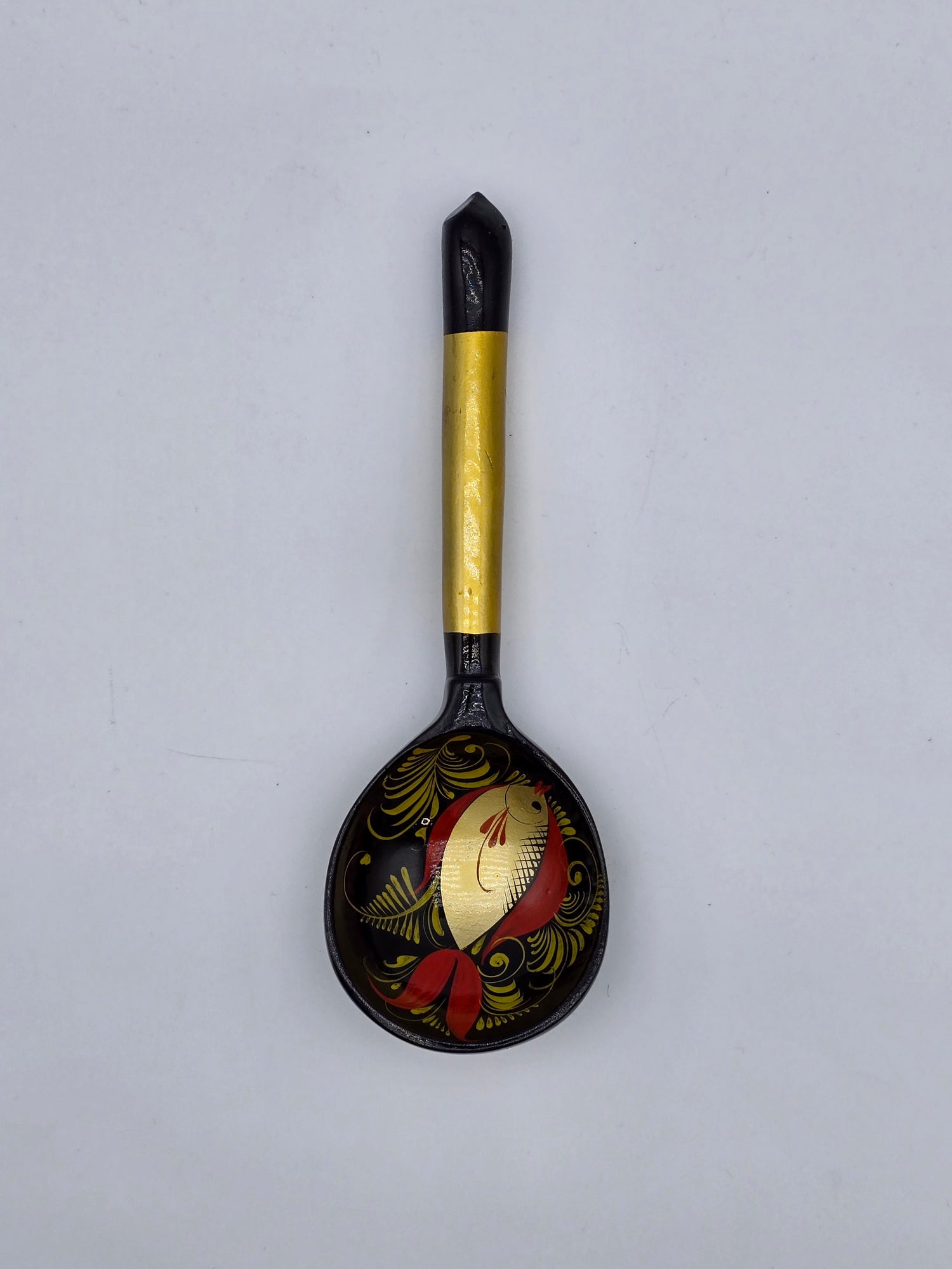 • Vintage Russian Khokhloma Craft Painted Laquered Wood Ladle Spoon 7.3" Folk Art Fish Design