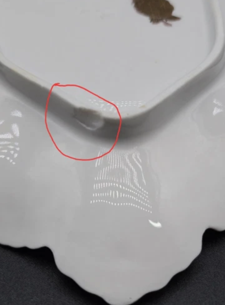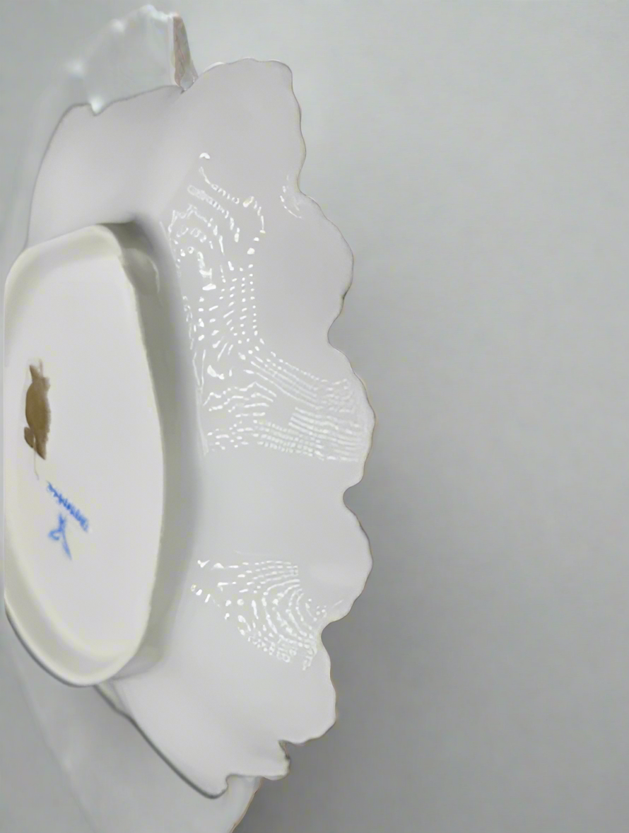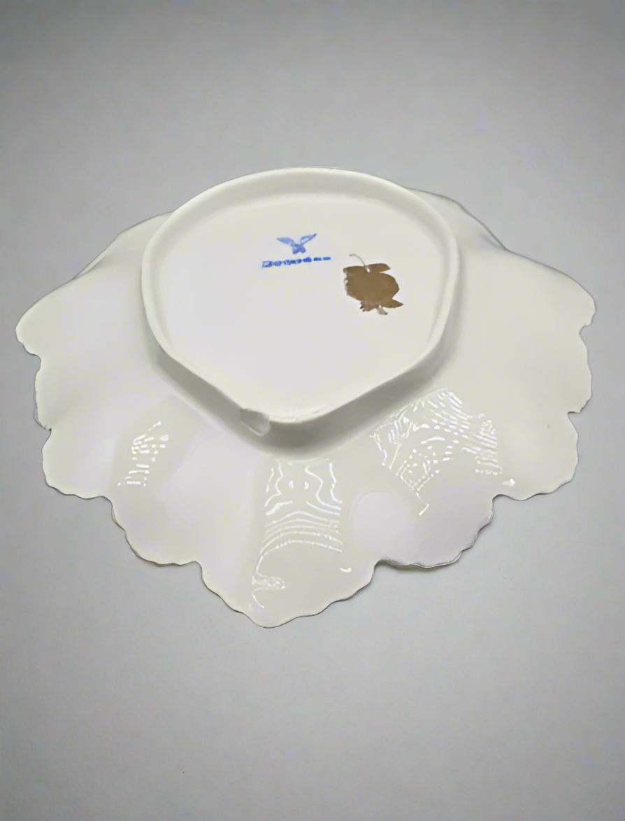 Antique Marked Dresden Hand Painted Oval Plate, Gold Trim & Floral Bouquets