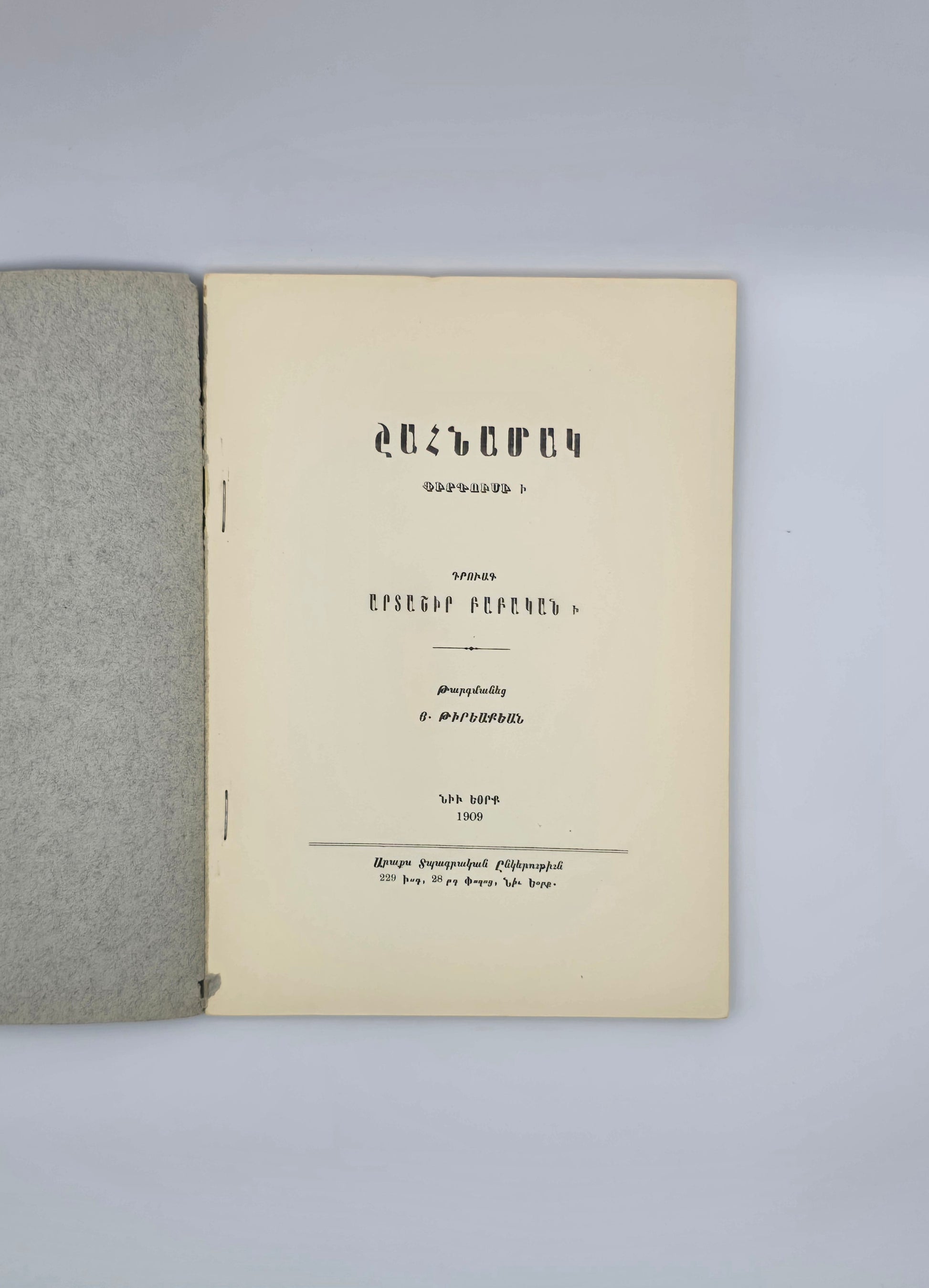 This is an Armenian antique book titled "ՇԱՀՆԱՄԱԿ Ֆիրդուսի" by author Firdus, published by Araqs in New York in 1909. This limited edition book, bound in softcover wraps, delves into Armenian-Iranian history, offering valuable insights into the region's cultural and historical significance.