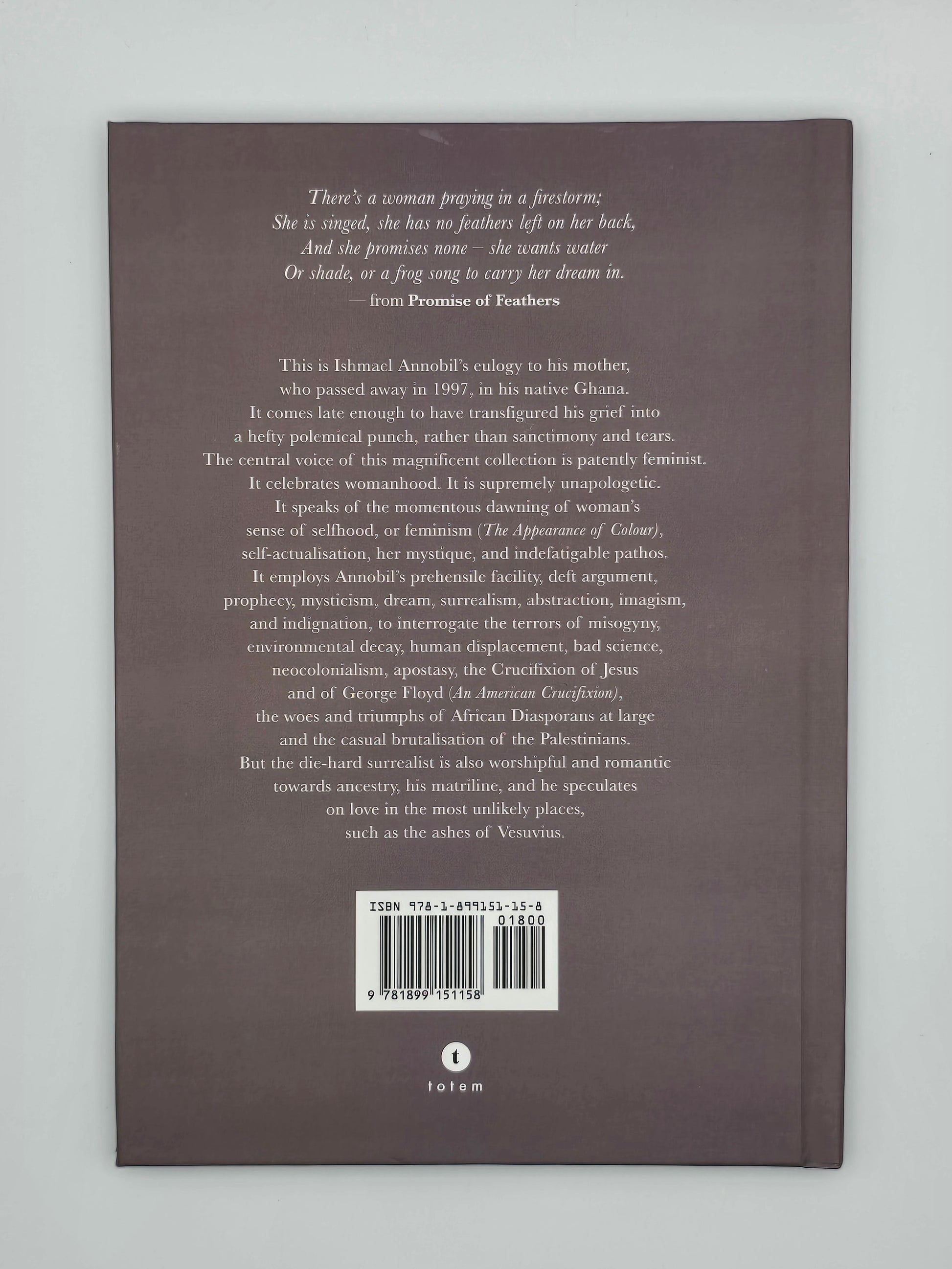 This is Ishmael Annobil's eulogy to his mother, who passed away in 1997, in his native Ghana. It comes late enough to have transfigured his grief into a hefty polemical punch rather than sanctimony and tears. The central voice of this magnificent collection is patently feminist. It celebrates womanhood. It is supremely unapologetic. It speaks of the momentous dawning of a woman's sense of selfhood, or feminism (The Abbearance of Colour), sclf-actualisation, her mystique, and indefatigable pathos. It employs Annobil's prehensile facility, deft argument, prophecy, mysticism, dream, surrealism, abstraction, imagism, and indignation, to interrogate the terrors of misogyny, environmental decay, and human displacement. bad science, neocolonialism, apostasy, the Crucifixion of Jesus and of George Floyd (An American Crucifixion), the woes and triumphs of African Diasporans at large, and the casual brutalisation of the Palestinians. But the die-hard surrealist is also worshipful and romantic towards ancestry, his matriline, and he speculates on love in the most unlikely places, such as the ashes of Vesuvius.