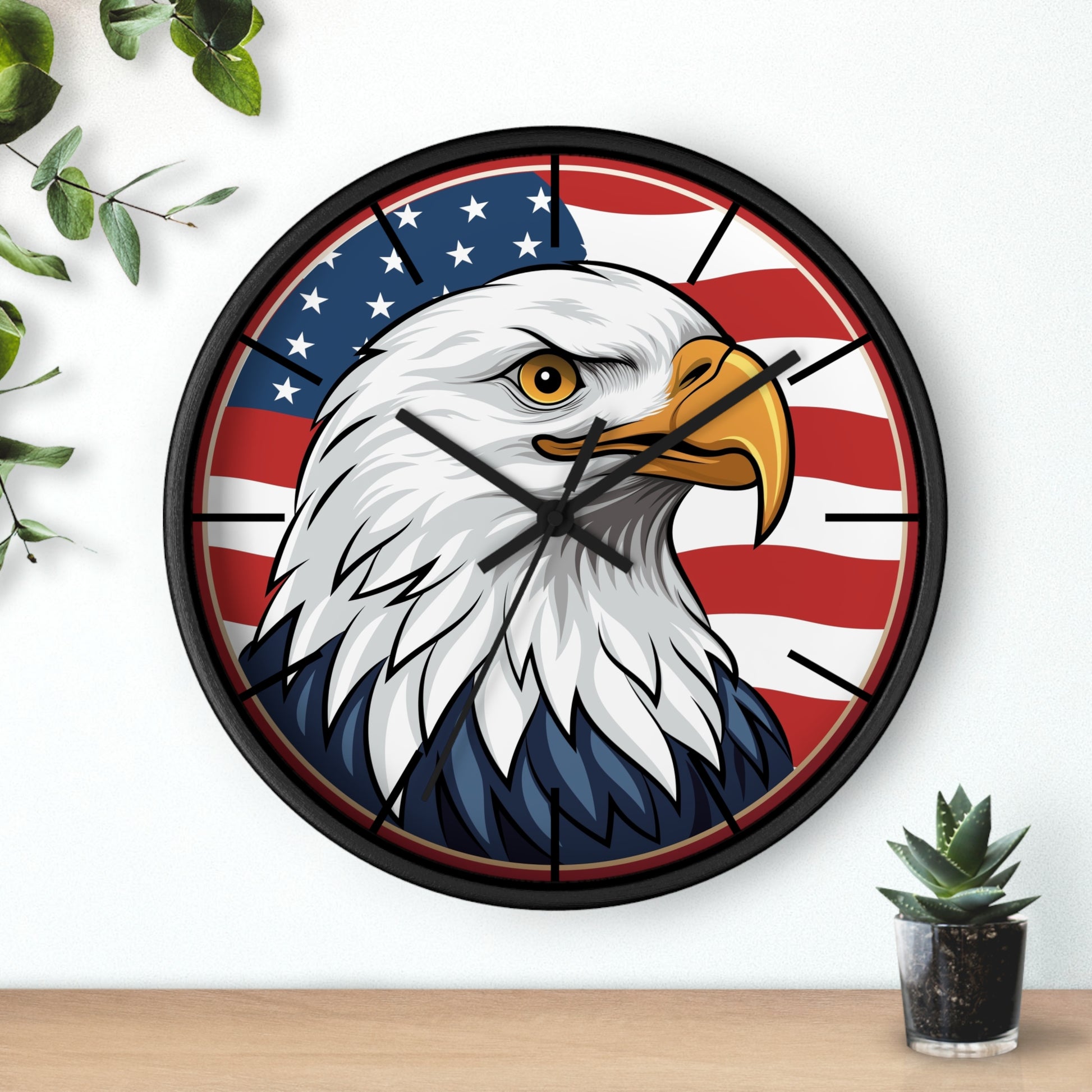 This American Eagle Wall Clock adds a touch of patriotism and elegance to any room. Perfect for those who love wildlife and nature, this clock will make a stylish statement in your home. Ideal for Memorial Day, Fourth of July, and Veterans Day.