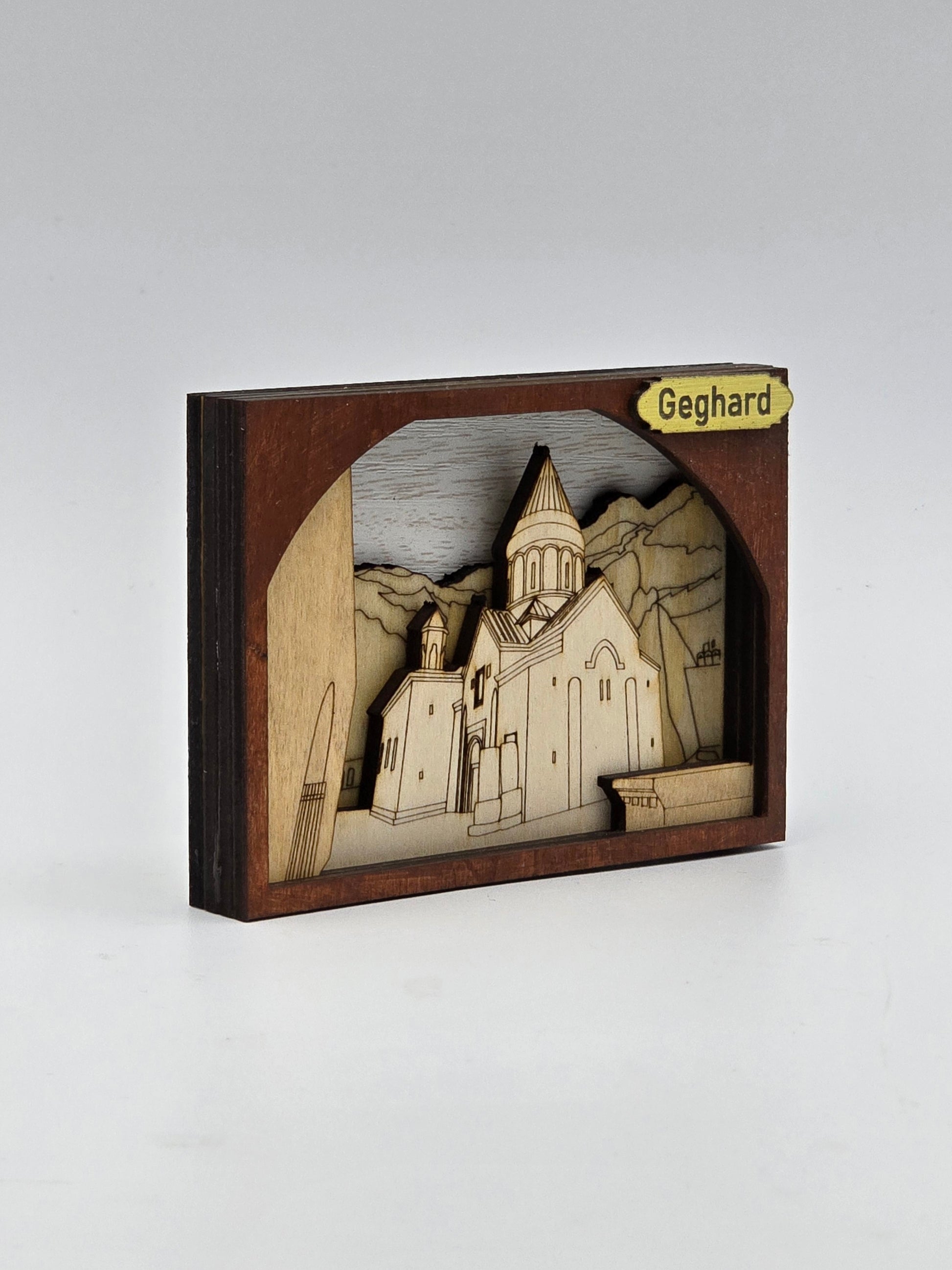 Geghard Monastery Fridge Magnet – Handmade Wooden Souvenir