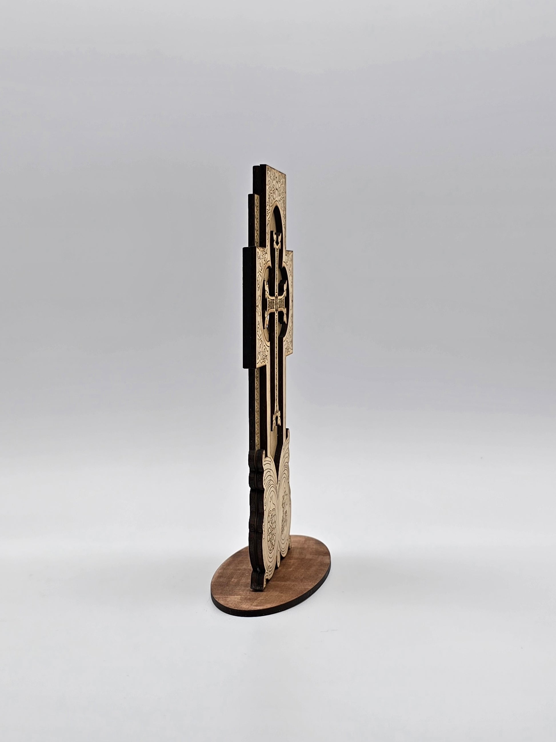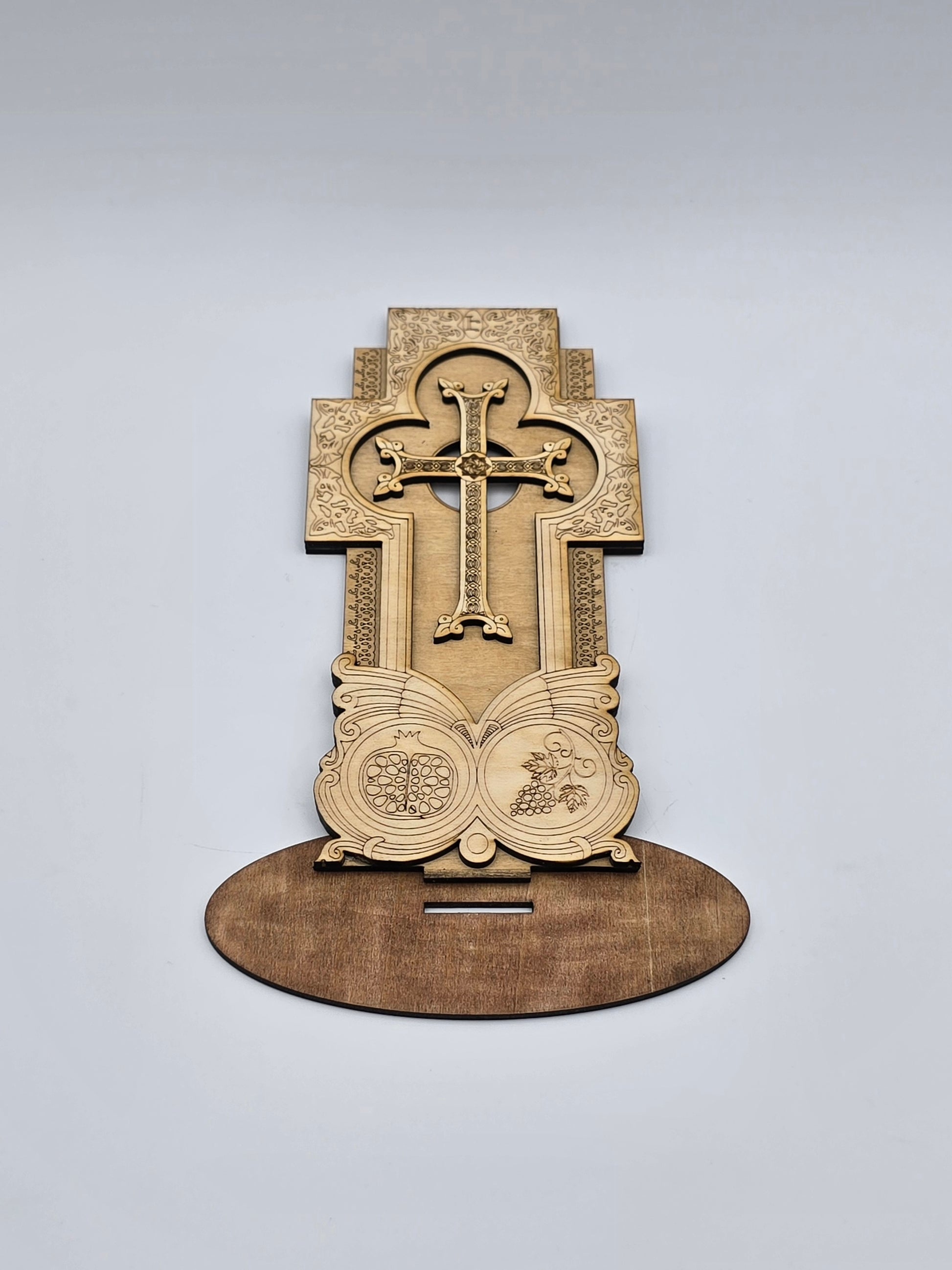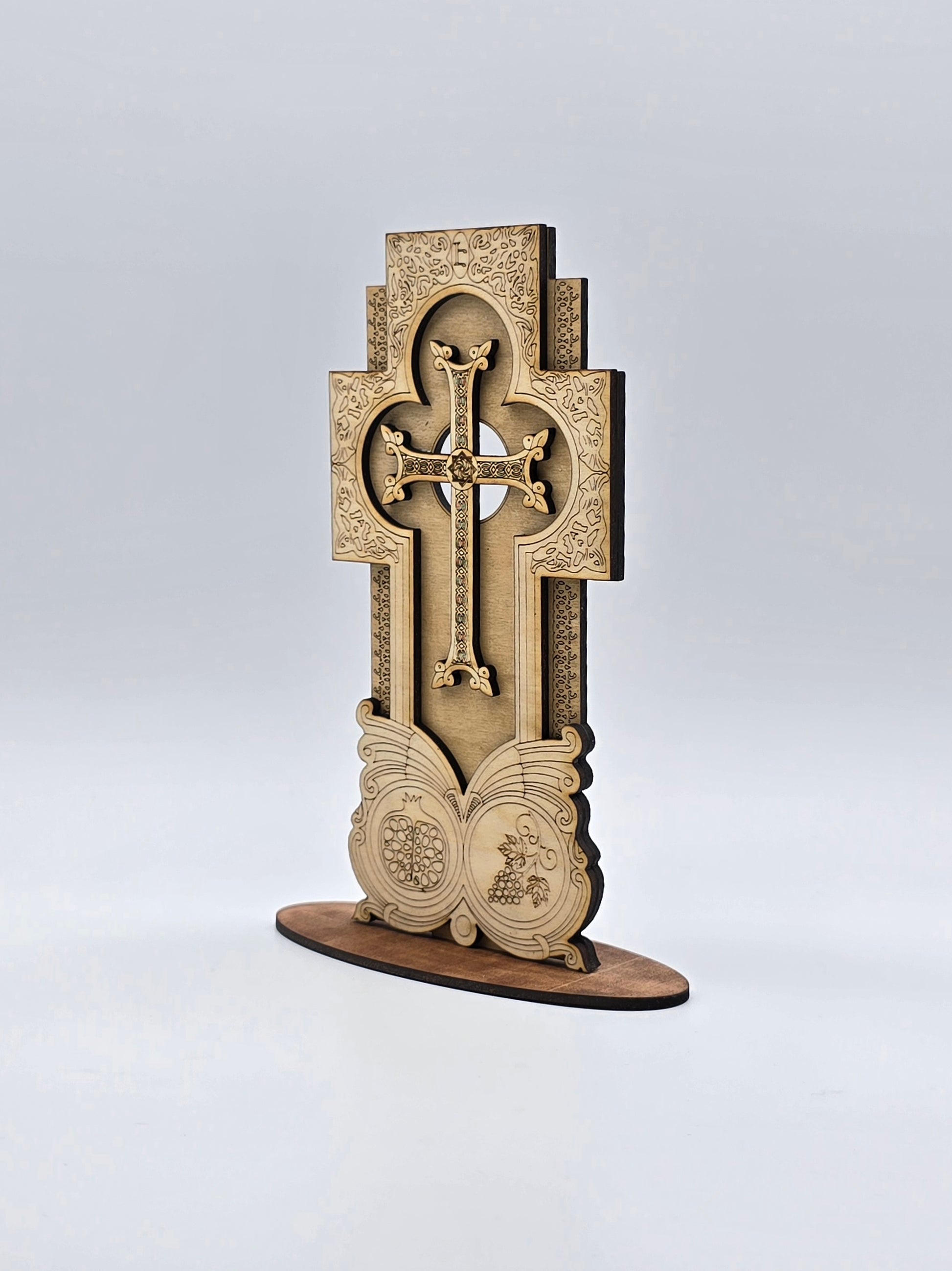 Handcrafted Armenian Wooden Khachkar Cross – Intricate Laser-Engraved Design