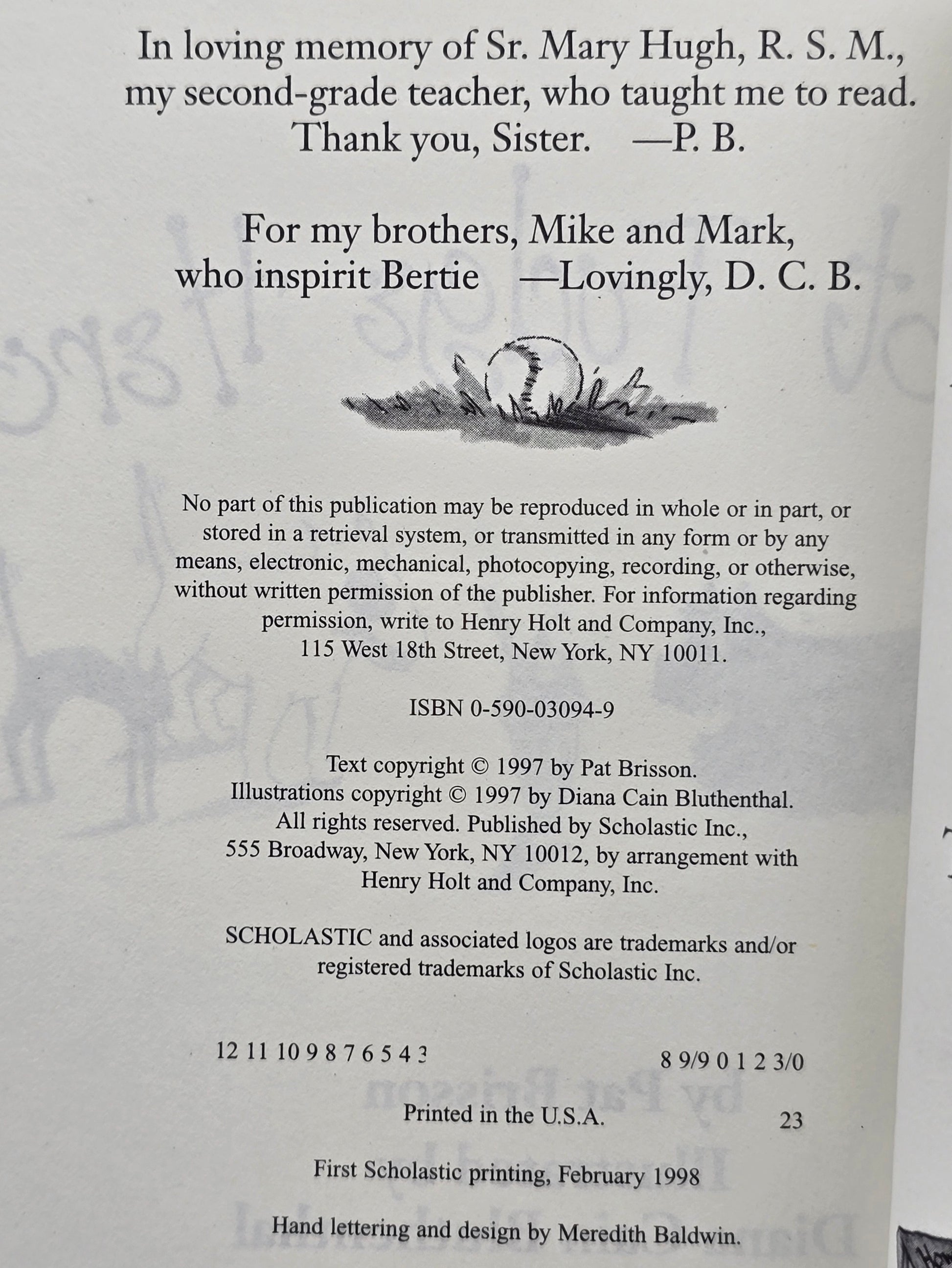 "Hot Fudge Hero" by Pat Brisson is a children's book published by Scholastic in 1998. This paperback book, with a size of 6x7.5 inches, features illustrations by Diana Cain Bluthenthal and is written in English. The story follows the adventures of a young boy. With a weight of 3.2 oz and 72 pages, this book is a fun and imaginative read for young readers.
