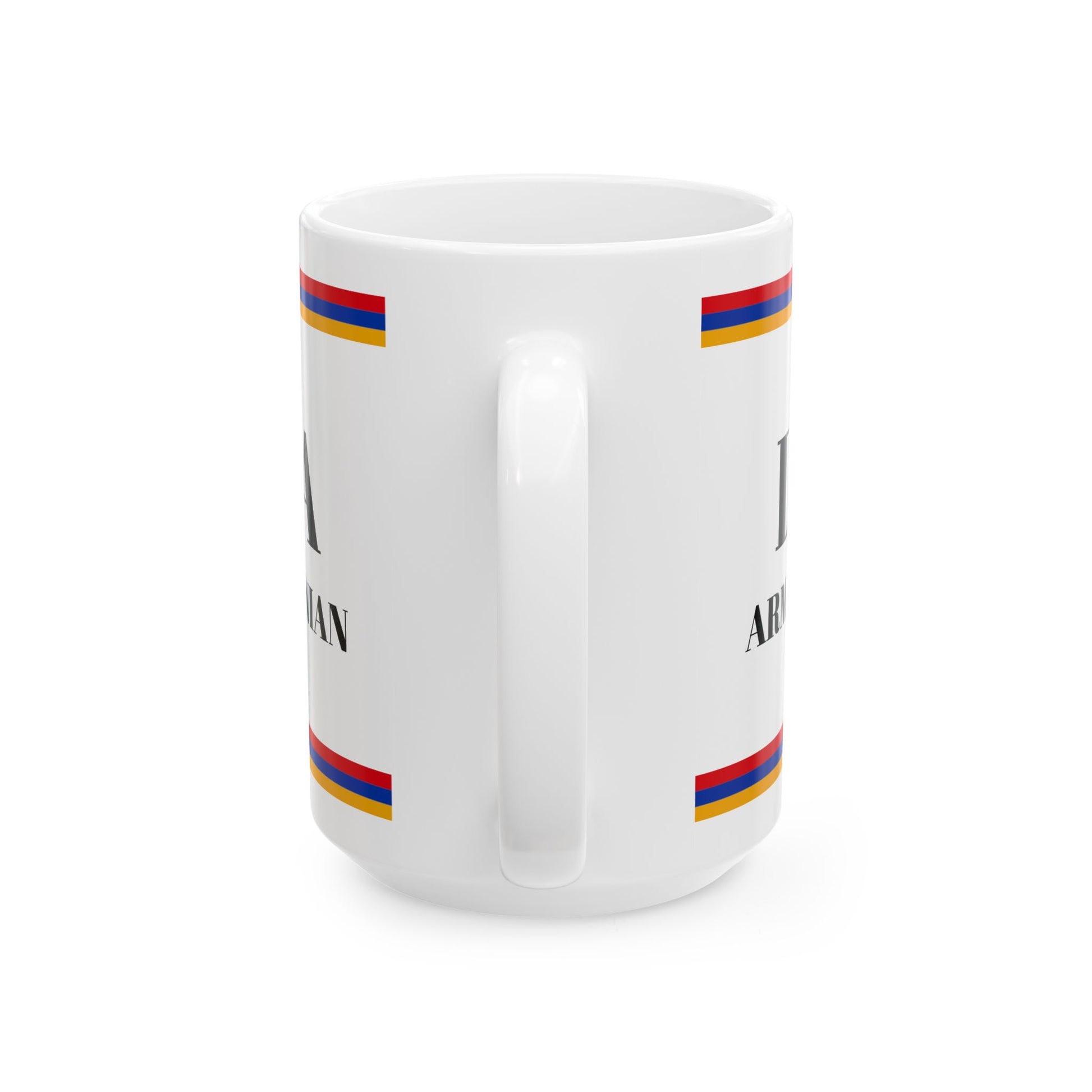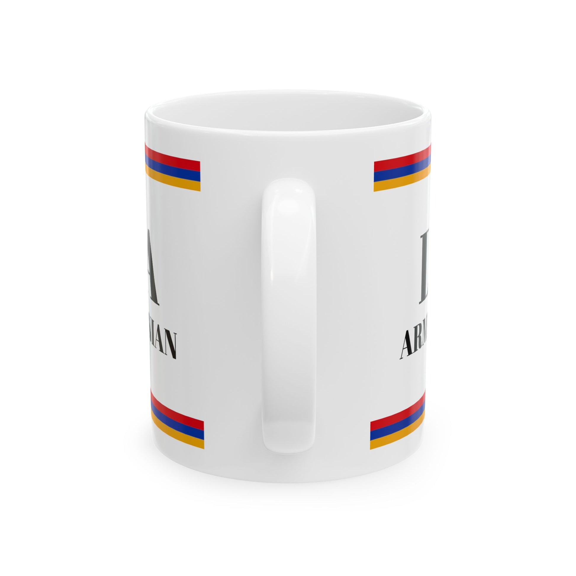 This LA Armenian Cup mug features a glossy ceramic finish with vibrant colors, perfect for adding a pop of personality to your morning routine. It's suitable for daily use and makes a unique gift for anyone proud of their Armenian heritage. Ideal for sipping coffee or tea, this mug is microwave and dishwasher safe.