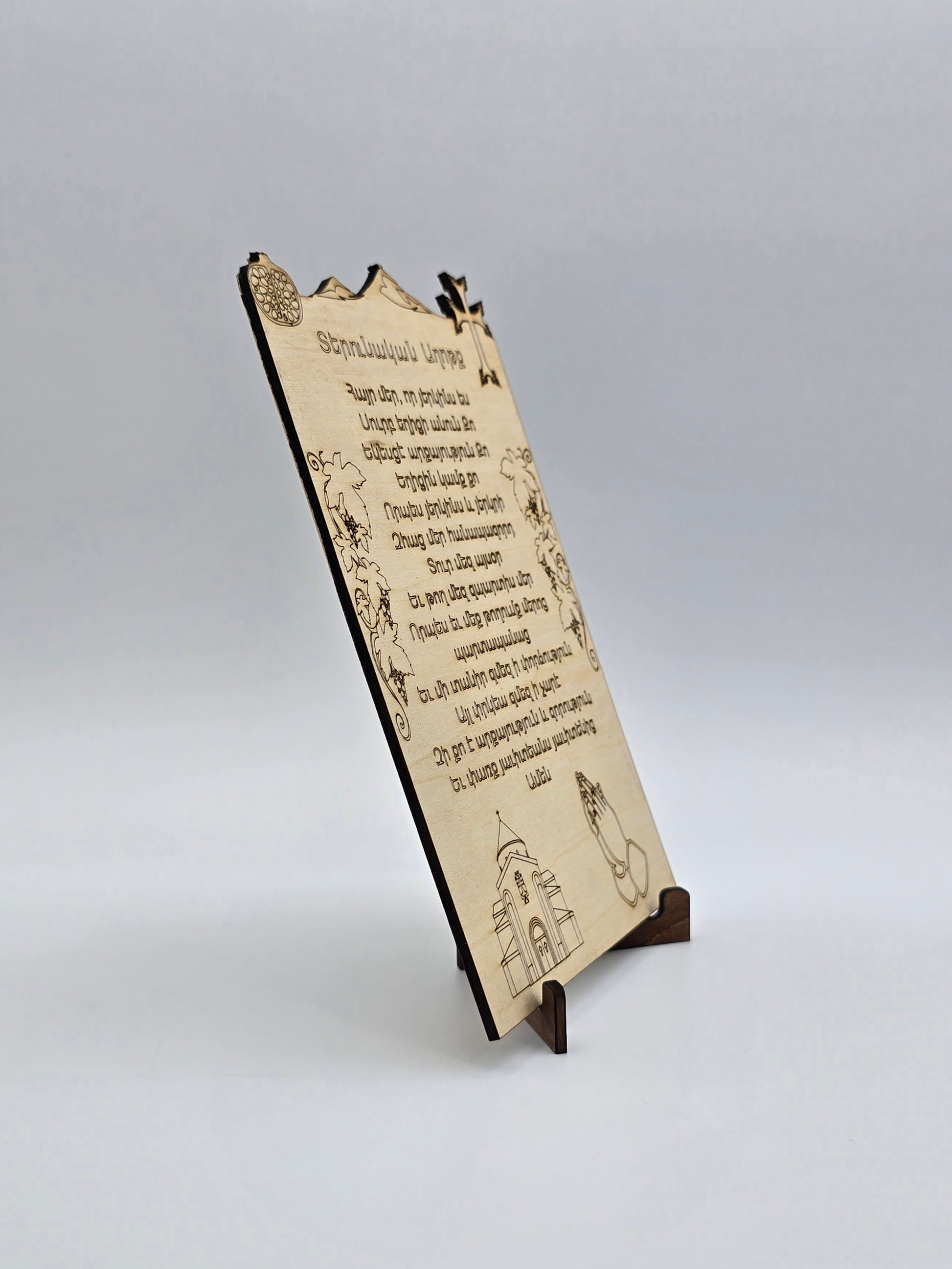 Laser-Engraved Armenian Lord’s Prayer Plaque – Wooden Wall or Table Display