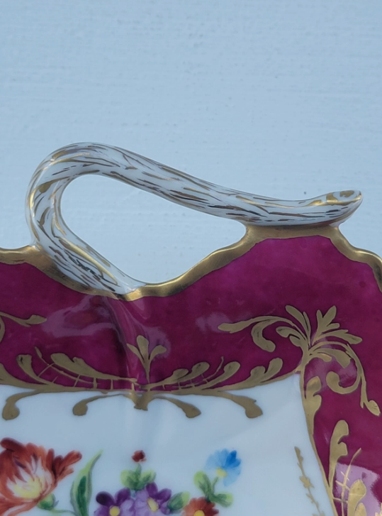 Vintage Le Tallec Limoges Hand Painted Porcelain Red Bowl with Flowers & Gold Trim