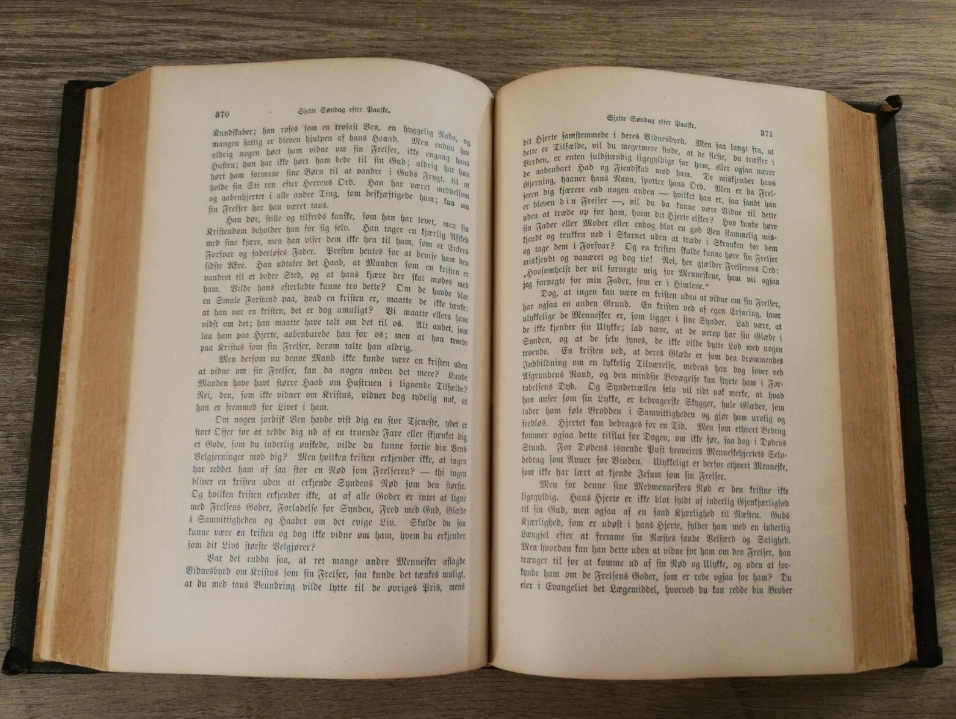 This an antique Danish book titled "Proedikener Ober Evangelierne" from the year 1888. It contains Gospel proverbs in Danish and likely serves as a collection of sermons or teachings related to the Gospels. This antique book offers a glimpse into the religious and linguistic context of late 19th-century Denmark.