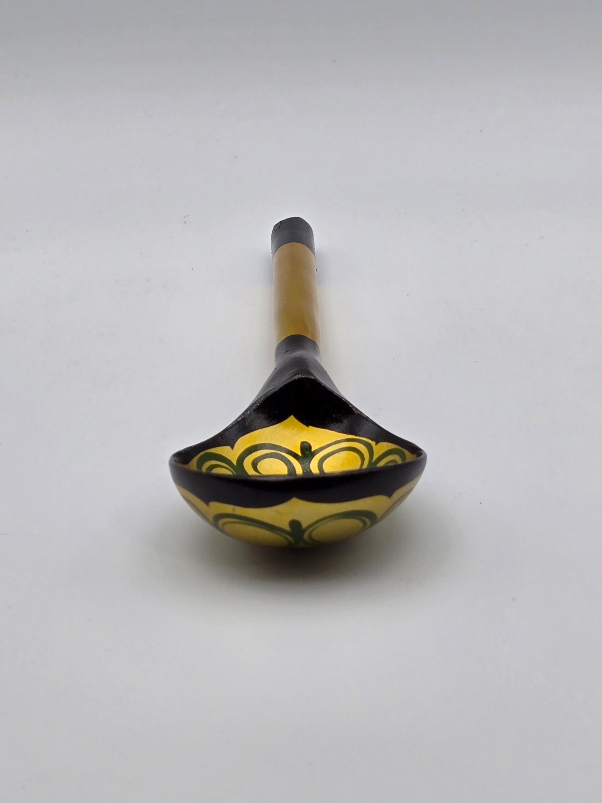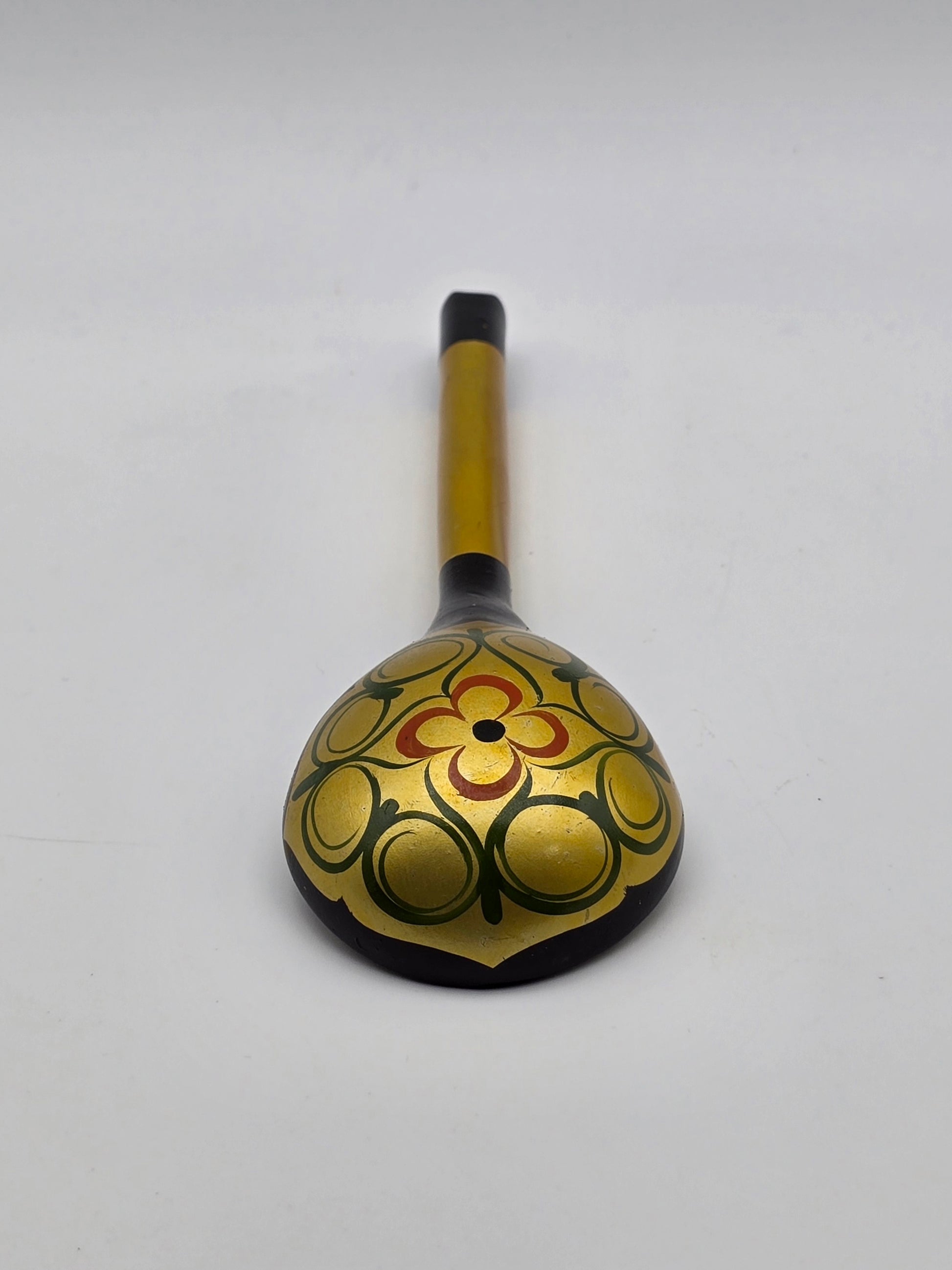 Vintage and Unused Russian Khokhloma Craft Painted Laquered Wood Ladle Spoon 7.25" is a beautiful and unique piece of folk art featuring a traditional Russian design. The ladle spoon is crafted with intricately painted wood, showcasing the cultural craftsmanship and artistic flair of Russian artisans. The floral design on the spoon adds a touch of charm and whimsy to this collectible piece, making it a wonderful addition to any collection or a thoughtful gift for someone who appreciates Russian culture and craftsmanship.