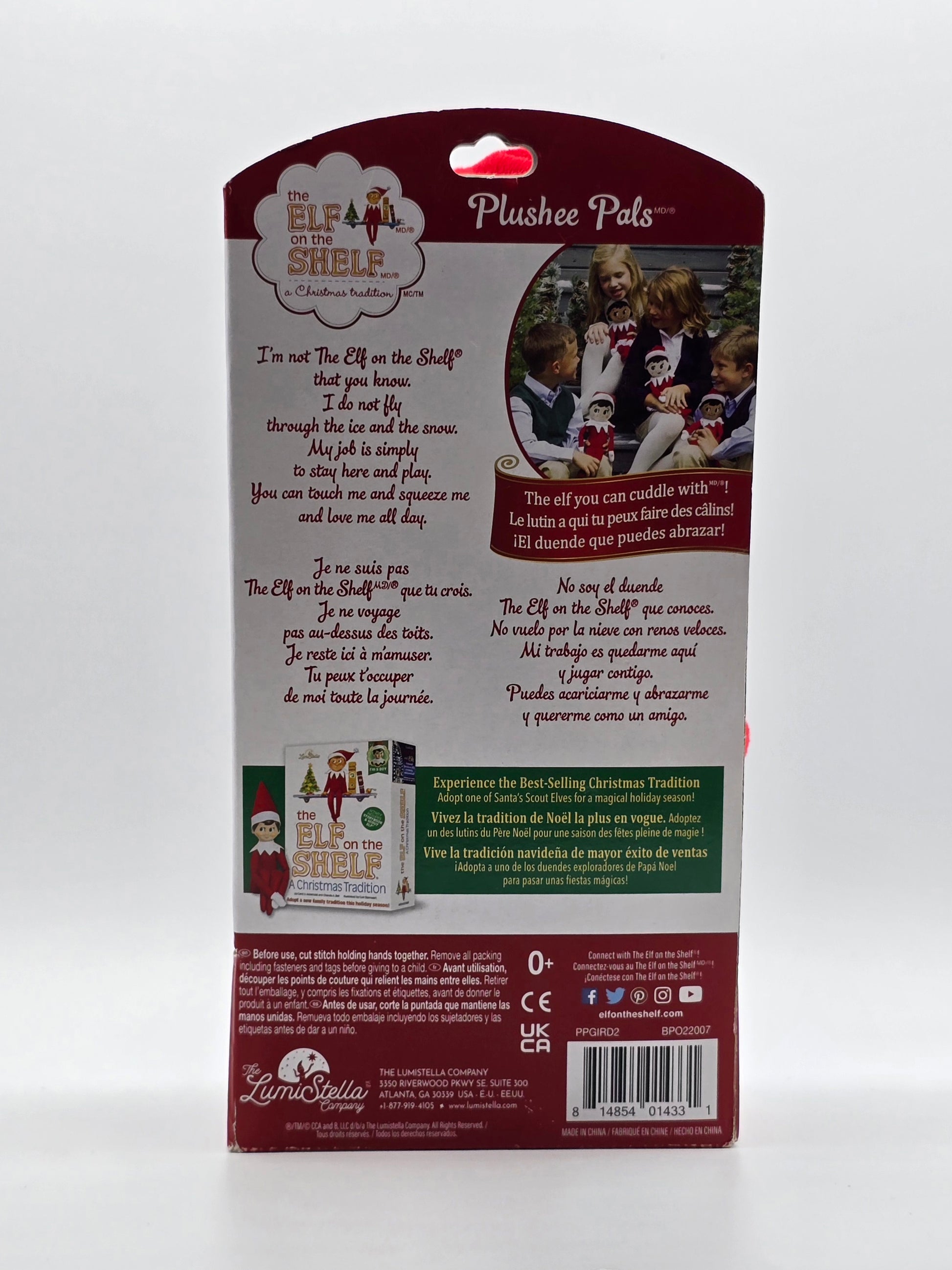 The Elf On The Shelf Girl Plushee Pals with dark skin and brown eyes, named NINA, is a new collectible figurine boxed in the 2020s. This product is part of the Elf on the Shelf brand and is designed for girls who cherish the holiday and seasonal theme of Elf figurines. Perfect for collectors or children who enjoy adding more characters to their Elf on the Shelf collection, this Girl NINA figurine is a delightful addition to any festive display.