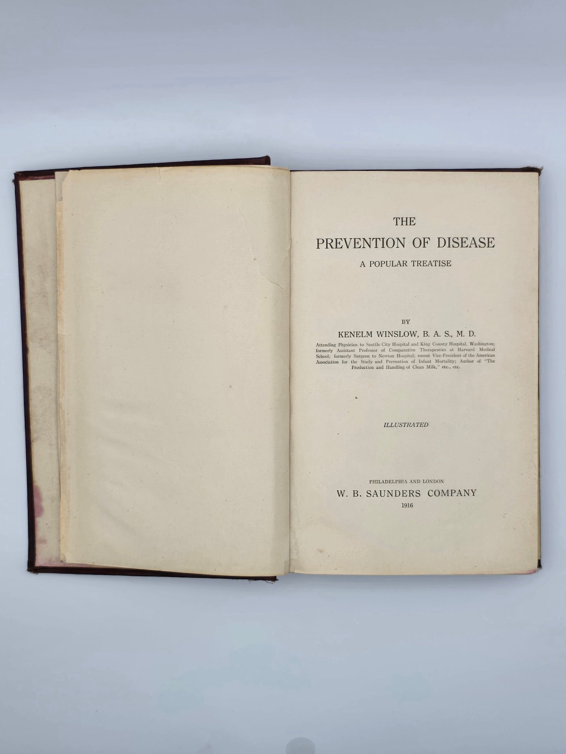 THE PREVENTION OF DISEASE A POPULAR TREATISE Antique Book, By K. Winslow. W. B. SAUNDERS COMPANY. America 1916.