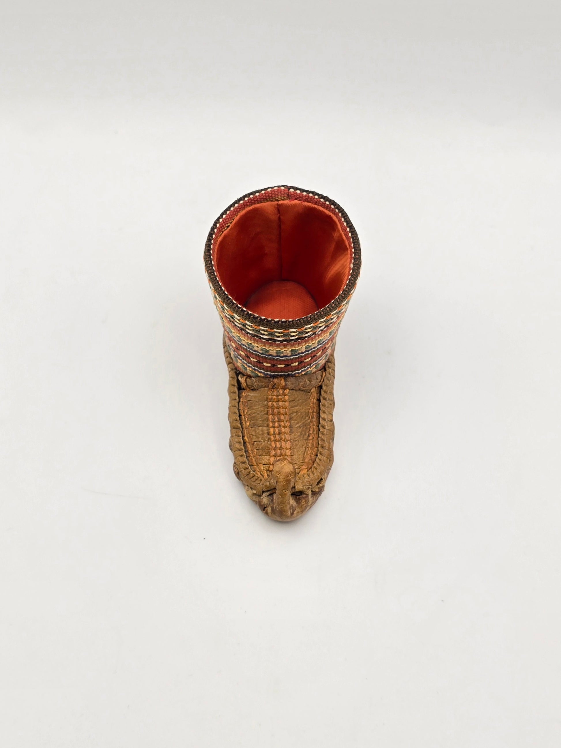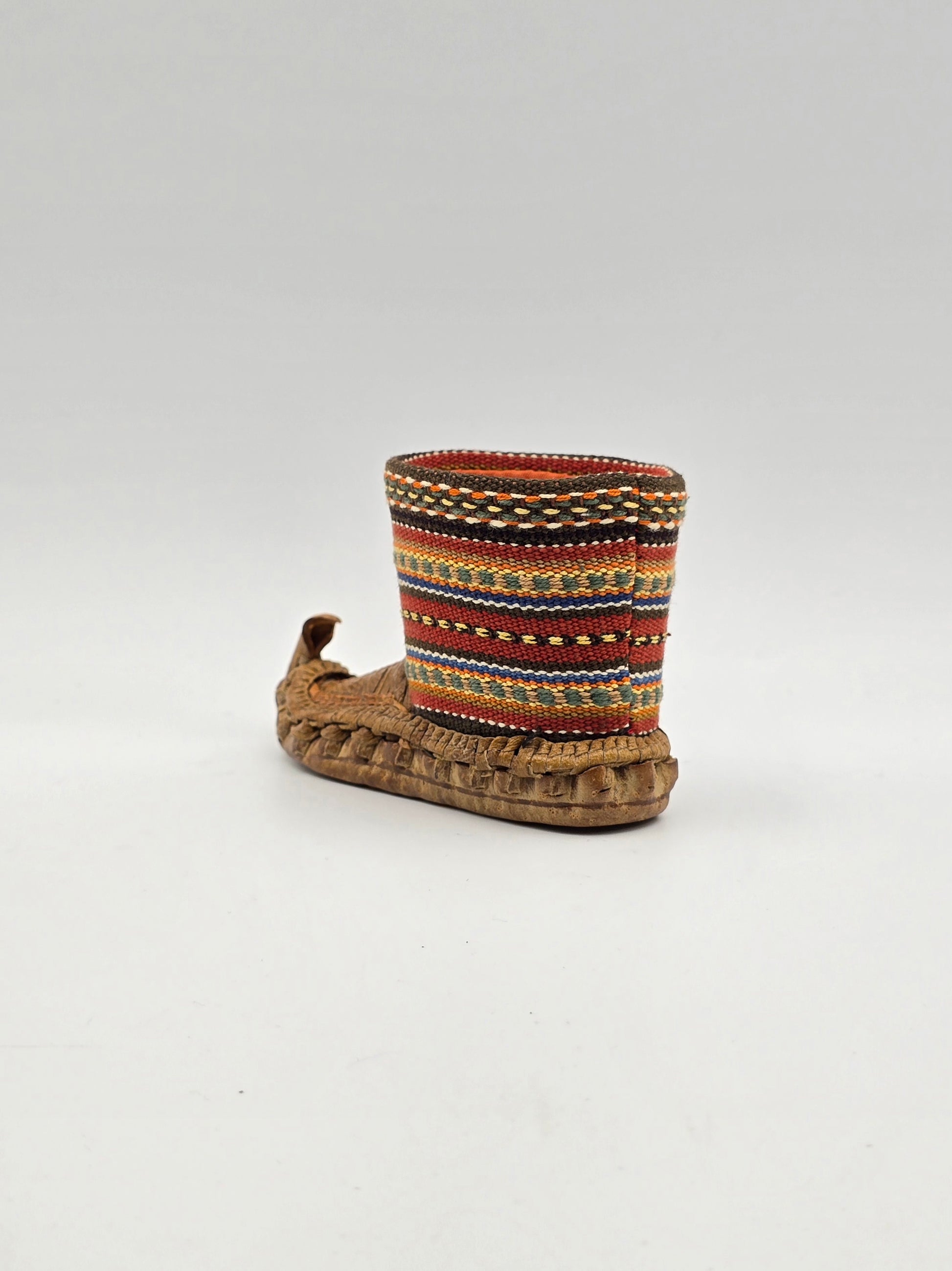 Vintage Mini Miniature Leather Opanak Peasant Shoe. Boot Moroccan Serbian Folk Art